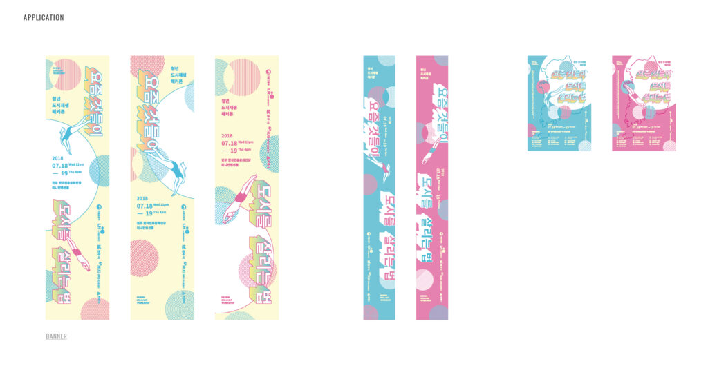 전주에서 진행된 제2회 청년 도시재생 해커톤. 디자인씽킹을 통해 지역 청년들이 도시재생 아이디어를 발굴하고 공공기관·전문가와 협력하여 실행 모델을 구상. 키비주얼 및 행사 운영 전반 담당