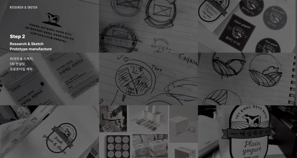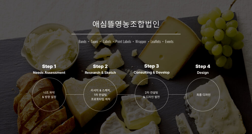 지역 농산물 브랜드의 경쟁력 강화를 위한 디자인 지원 사업으로, 애심뜰영농조합법인의 유제품에 신선함과 깨끗한 이미지를 전달하는 패키지 아이덴티티를 구축