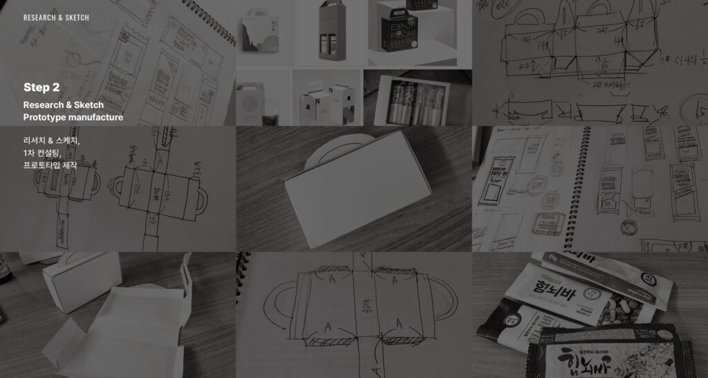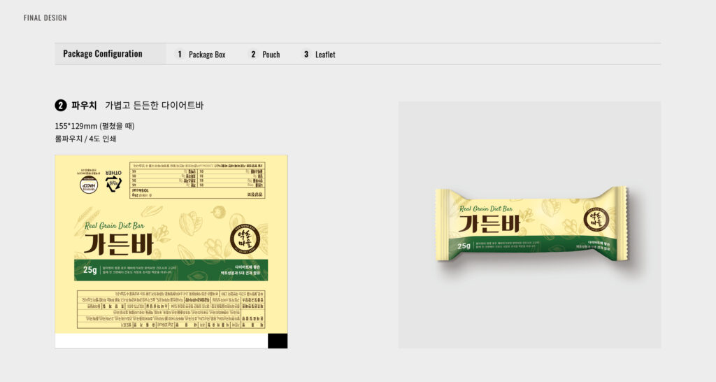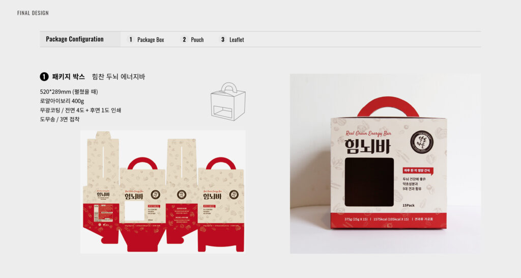 곡물과 약초의 원재료 감성을 살린 따뜻한 내추럴 톤의 패키지 디자인을 전개했습니다.