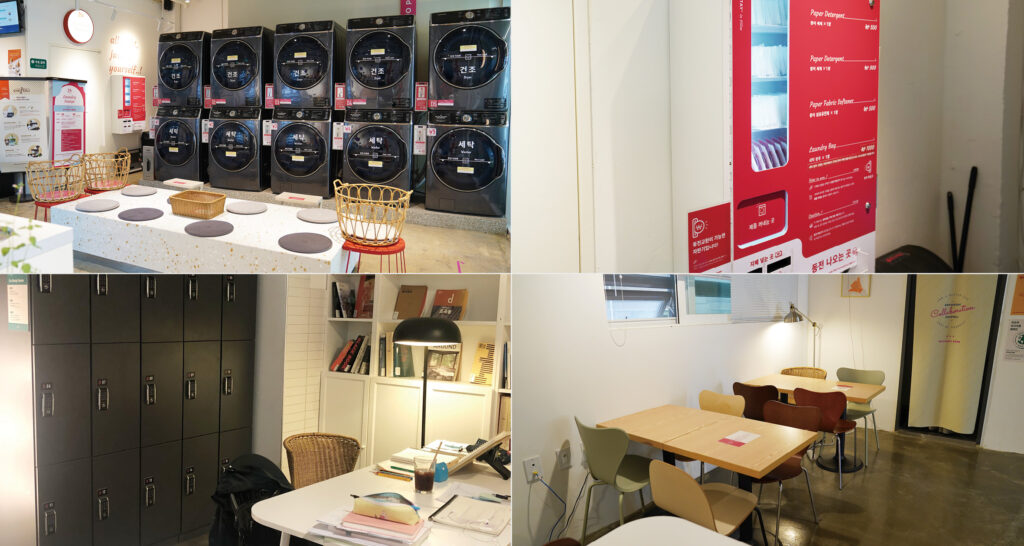 • 1F Café & Laundry Lounge : 세탁, 독서, 대화가 공존하는 오픈형 라운지