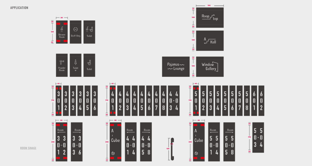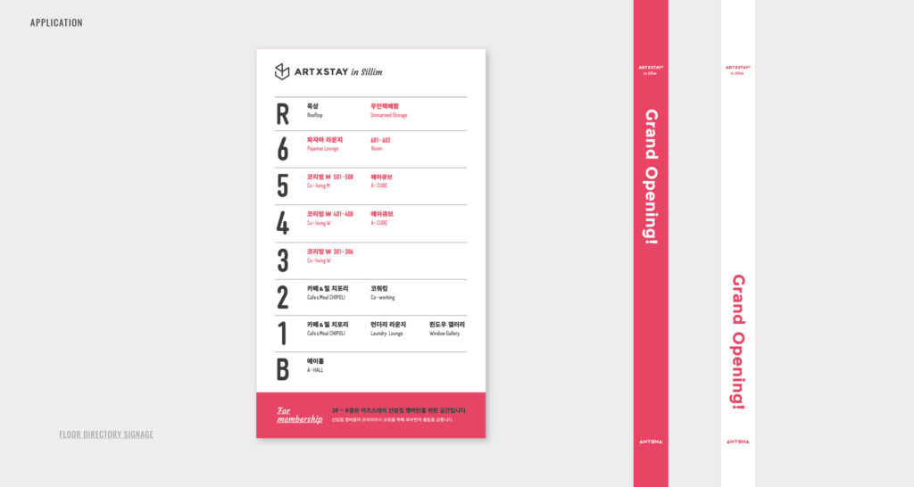 • Signage System : 층별 안내 및 룸넘버, 커뮤니티 공간 사인 디자인