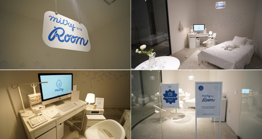 • ‘흰 우유만 마시는 밀키’를 모티프로 한 화이트톤 컨셉룸