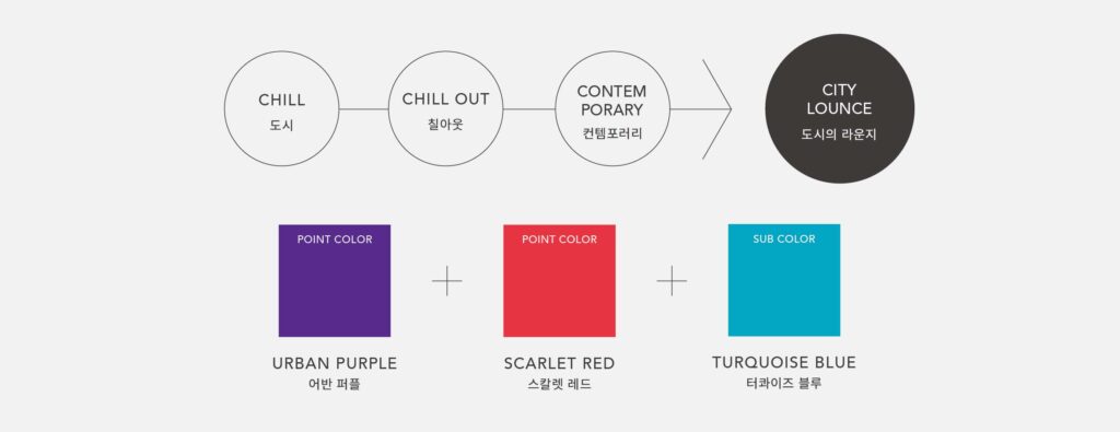 라운지 음악의 리듬감과 포인트 컬러를 더해,