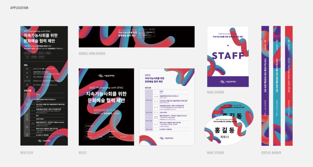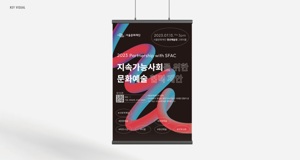 서울문화재단 주관 ‘지속가능사회를 위한 문화예술 협력 제안 설명회’. 키비주얼 및 공간 연출, 케이터링 세팅.